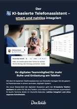 Zum anderen integriert Doctolib moderne Kommunikations- und Dokumentationslösungen: Von der datenschutzkonformen Video­sprechstunde bis zur digitalen Patientenakte sind alle zentralen Prozesse abgedeckt. Selbst reibungslose Abrechnung und Dokumentation werden unterstützt – zum Beispiel durch KI-Assistenz, die Gespräche mitschreibt oder abrechnungsrelevante Informationen vorbereitet. Sie und Ihr Team profitieren von mehr Übersicht, weniger Klicks und intelligenten Automatismen im Hintergrund.