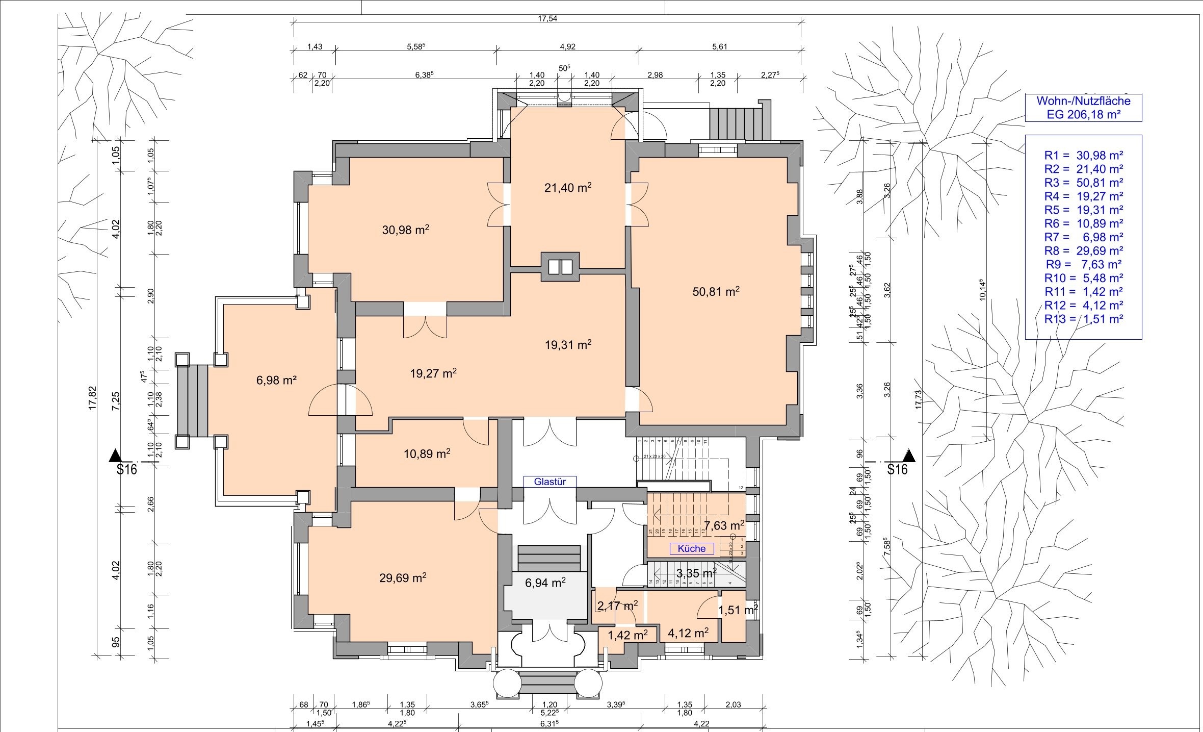 Hier wohnte und praktizierte mit großem Erfolg ein Chirurg über Jahrzehnte. Die Etagen sind so ausgestattet dass die Möglichkeit im Haus zu wohnen und arbeiten immer noch besteht.