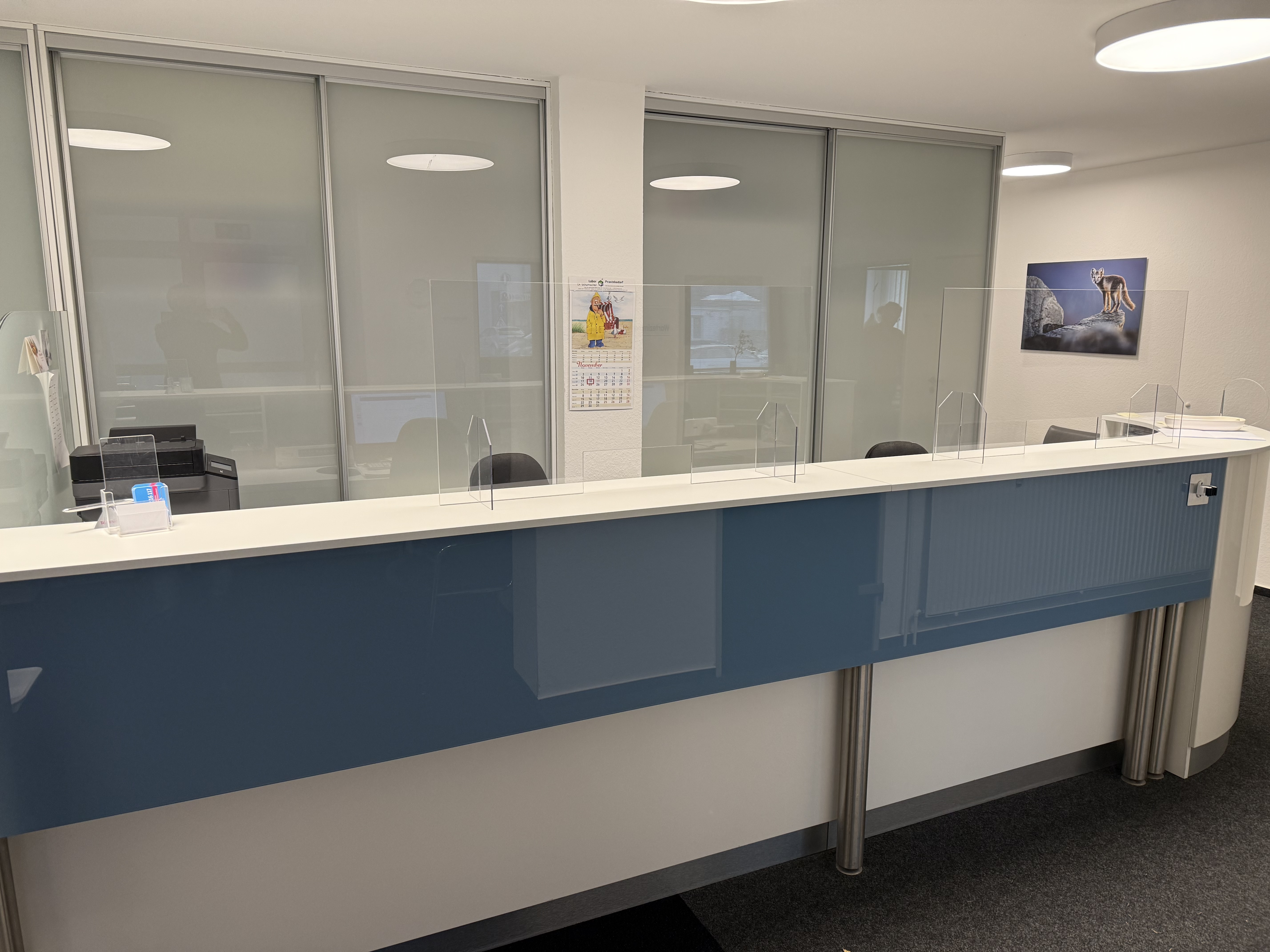 Die Praxisräume sind sehr hell, modern und gepflegt. 2015 wurde eine maßgefertigte Rezeption eingebaut, beide Sprechzimmer sind mit hochwertiger USM-Haller-Ausstattung eingerichtet. Wartebereich, Empfang und Behandlungsräume präsentieren sich in sehr gutem Zustand und sorgen für eine freundliche, einladende Atmosphäre.